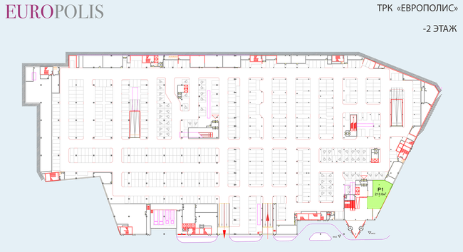 На нижних двух уровнях ТРК «Европолис» будет располагаться парковка на 1300 м/мест.